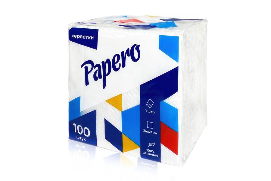 Салфетки бумажные Papero, 1 слой, 100 шт., 24×24 см
