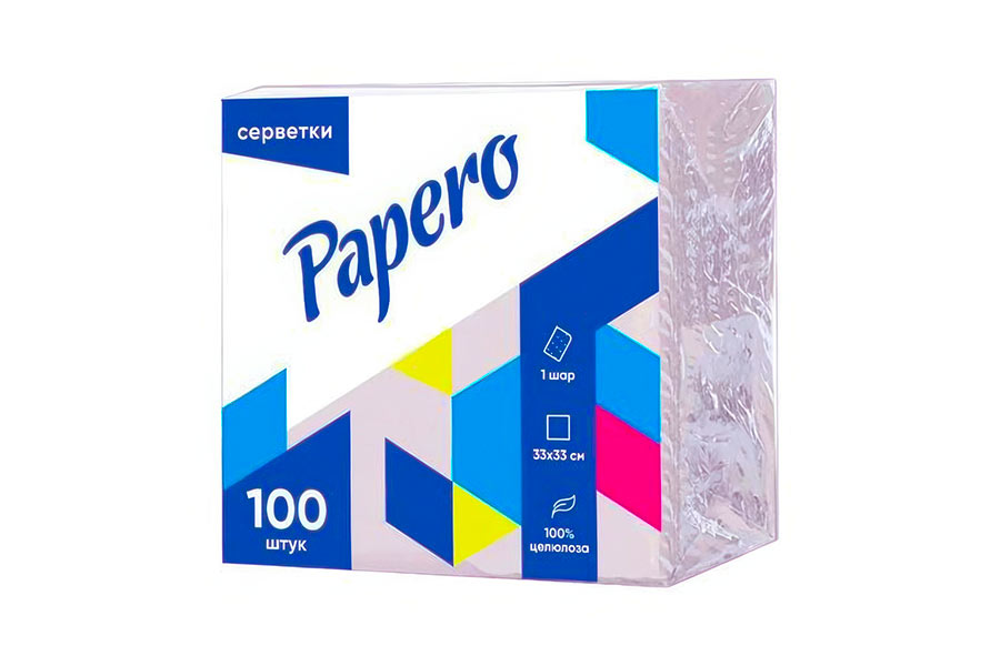 Салфетки бумажные Papero, 1-слойные, 33×33 см, 100 шт.